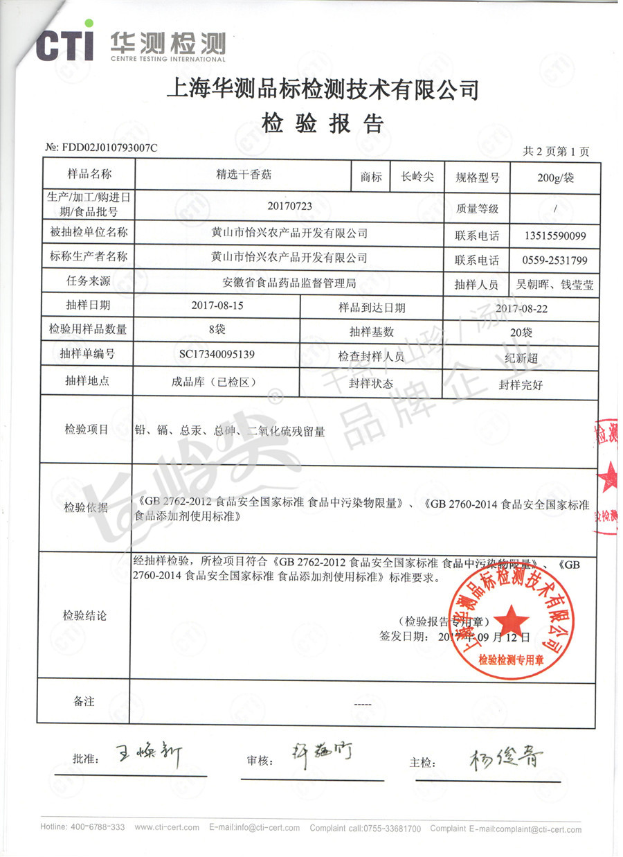 干香菇檢測報(bào)告