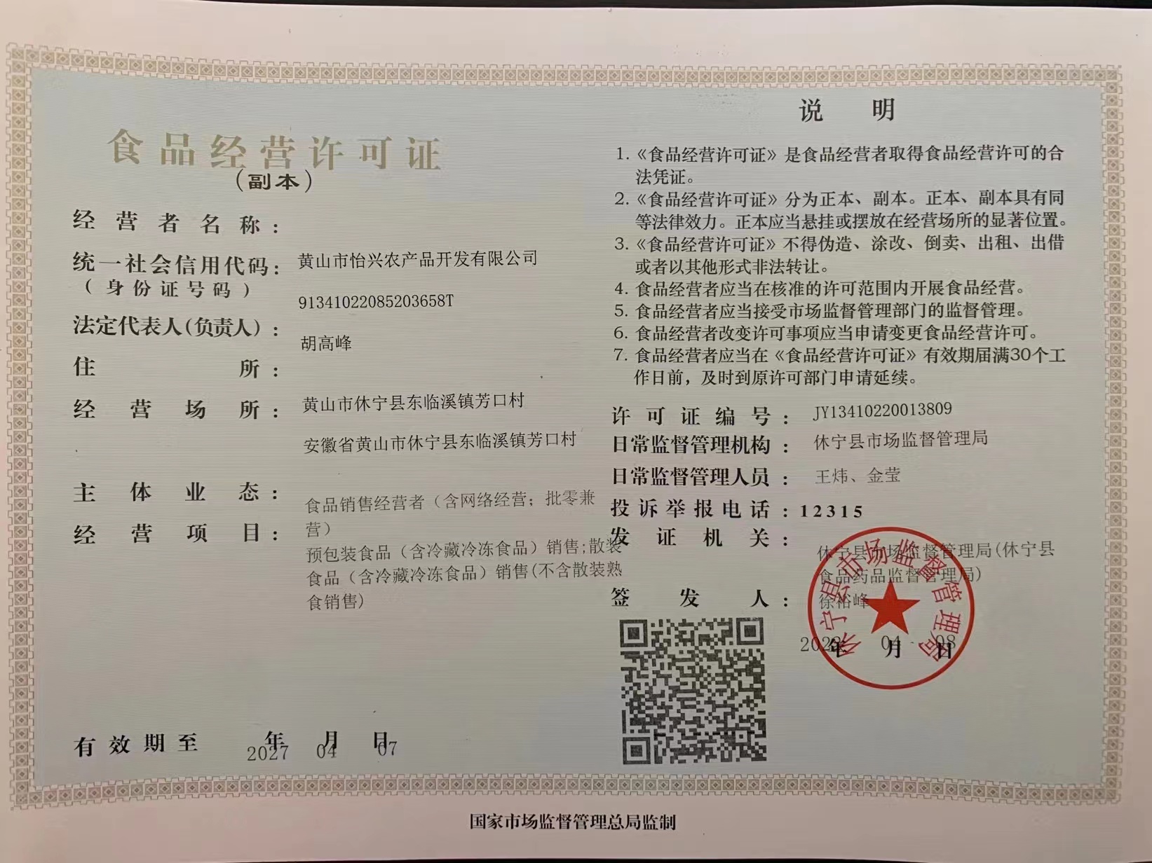 怡興食品經(jīng)營許可證正本