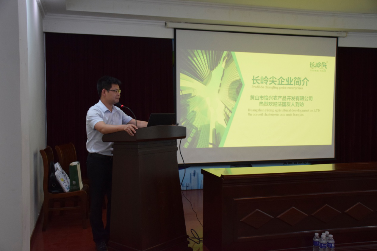 圍繞著法國的紅酒、埃菲爾鐵塔、浪漫主義、極致追求;圍繞著世界的黃山、中國的徽州、徽州的徽商等,進(jìn)行深入的交流討論,從而引出了公司在自有工廠、自有基地、產(chǎn)品保障體系、市場(chǎng)布局能力等方面進(jìn)行了分享與交流。法國的友人們,對(duì)公司的情況聽得十分的投入,掌聲不斷。
