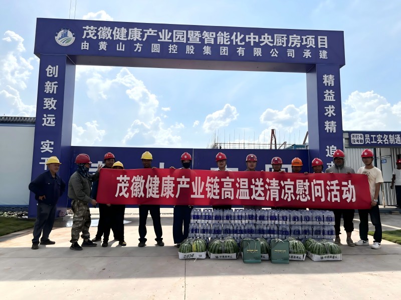 2024年7月22日下午,茂徽健康產(chǎn)業(yè)鏈董事長胡高峰帶領(lǐng)部分團隊成員來到茂徽健康產(chǎn)業(yè)園暨智能化中央廚房項目工地慰問一線工人,對一線工人頂著烈日辛勤工作表示認可,并要求項目施工單位方圓控股在保證工程質(zhì)量的同時,要安全作業(yè)!
